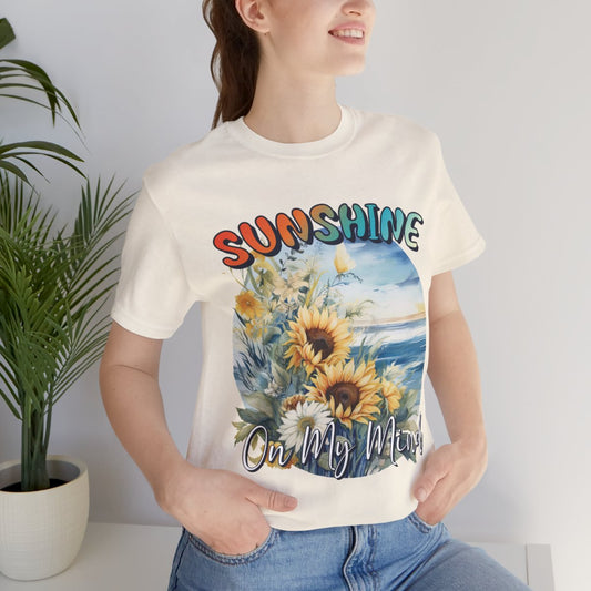 Sunshine on My Mind T-Shirt – Sommerliches Shirt mit Sonnenblumen & Strandmotiv | Unisex Shirt in Weiß, Schwarz oder Natur