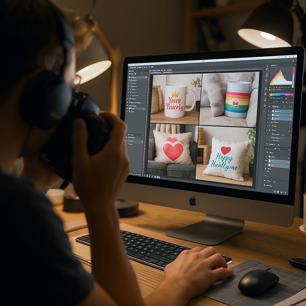 Jedes Stück, das wir gestalten – ob personalisierte Tassen, einzigartige Fotogeschenke oder handverlesene Geschenkboxen – trägt ein Stück Herz in sich. Es wird nicht einfach produziert, sondern für dich entworfen, mit Liebe verpackt und mit Freude versendet.
